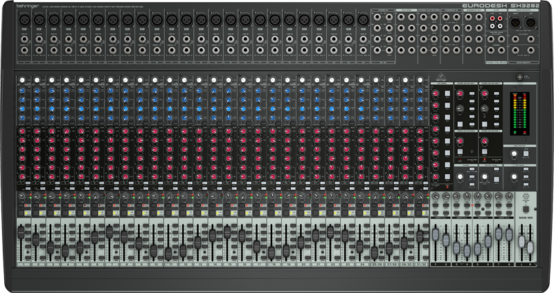 24 pré-amplificadores de microfones Xenyx com phantom power de +48 V selecionável;
