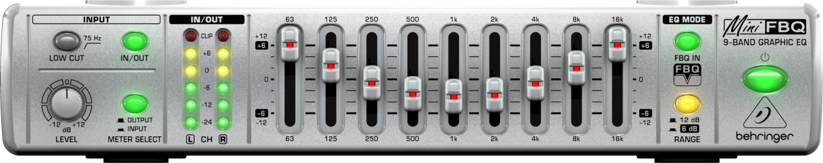 O FBQ800 é um equalizador gráfico ultracompacto de 9 bandas e com sistema de Feedback Detection que revela frequências críticas e também pode ser utilizado como analisador de áudio. O equipamento ainda conta com Filtro Low-cut que remove frequências indesejáveis.