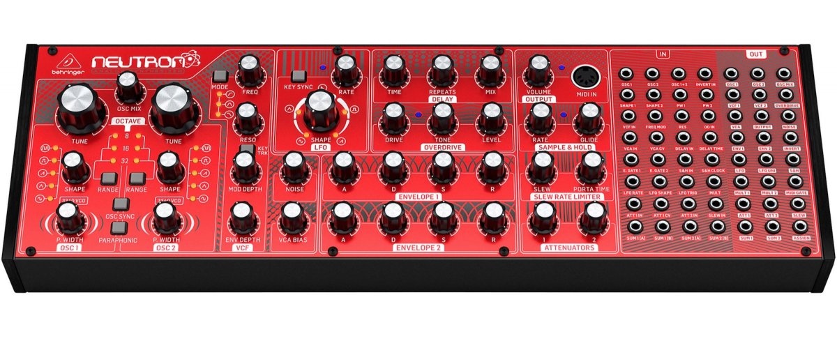 Sintetizador parafônico analógico e semi-modular com dois vcos 3340, multi-modo VCF, 2 adsrs, DELAY BBD e overdrive em um formato Eurorack