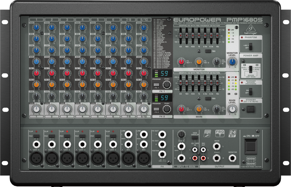 O mixer EUROPOWER Behringer representa a nova geração de mixer amplificado com uma saída poderosa de até 1.600-Watts para o modelo PMP1680S. O mixer EUROPOWER possue uma única missão que é de proporcionar uma força explosiva e um som de altíssima qualidade em caixas surpreendentemente compactas e leves! Este nível superior é atingido através de uma tecnologia de nova geração classe D, que amplia muito a força combinando som limpo com um sistema super compacto.