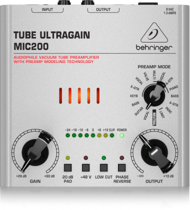 Com o incrível pré-amplificador MIC200 você pode aquecer um sinal rápido, dando-lhe profundidade e corpo. Embora transistores sejam mais utilizados hoje em dia, muitos músicos concordam que válvulas proporcionam um som muito superior. Com válvulas 12AX7 selecionadas a mão, o TUBE ULTRAGAIN MIC200 trás toda a qualidade, profundidade, e requinte das válvulas para utilização desde microfones para guitarras acústicas, ou baixas. A solução perfeita para você obter essa vibe de válvulas em qualquer situação, de forma altamente confiável e acessível.