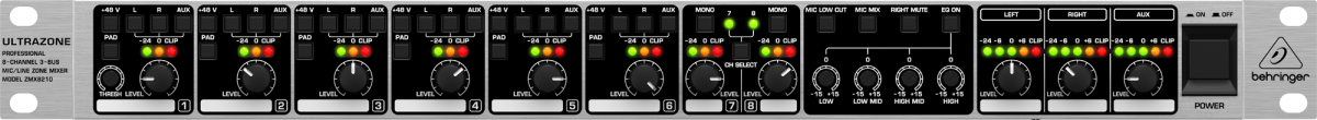 O Mixer Behringer Ultrazone ZMX8210 é a solução ideal de áudio para qualquer um que necessita adicionar música e criação de cenas de áudio ao seu ambiente. As aplicações mais comuns incluem restaurantes, escritórios e igrejas.