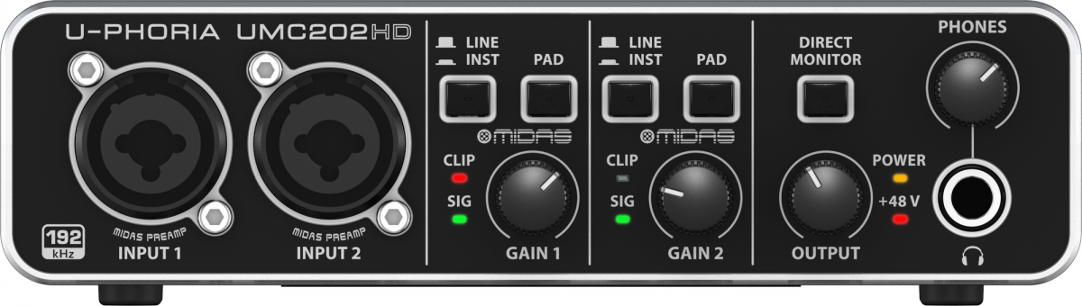 A UMC202HD é uma interface de áudio HD de Linha U-Phoria. Com ela é possível gravar seus sons em minutos com toda a conectividade necessária para seus microfones, guitarras, teclados e até mesmo dispositivos MIDI. O modelo possui 2 (dois) pré-amplificadores Midas que incluem Phantom Power de 48 volts para microfones condensadores, todos passando por uma perfeita conversão 24-Bits/192 kHz para a melhor qualidade de som possível.