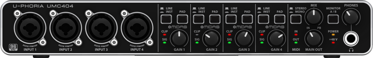 O UMC404 é uma interface de áudio que facilita a realização de suas gravações em poucos minutos com toda a conectividade necessária para seus microfones, guitarras, teclados e até mesmo dispositivos MIDI. Também conta com os famosos pré-amplificadores de microfone MIDAS, conhecidos pela sua reputação impecável e compromisso com a qualidade de áudio.
