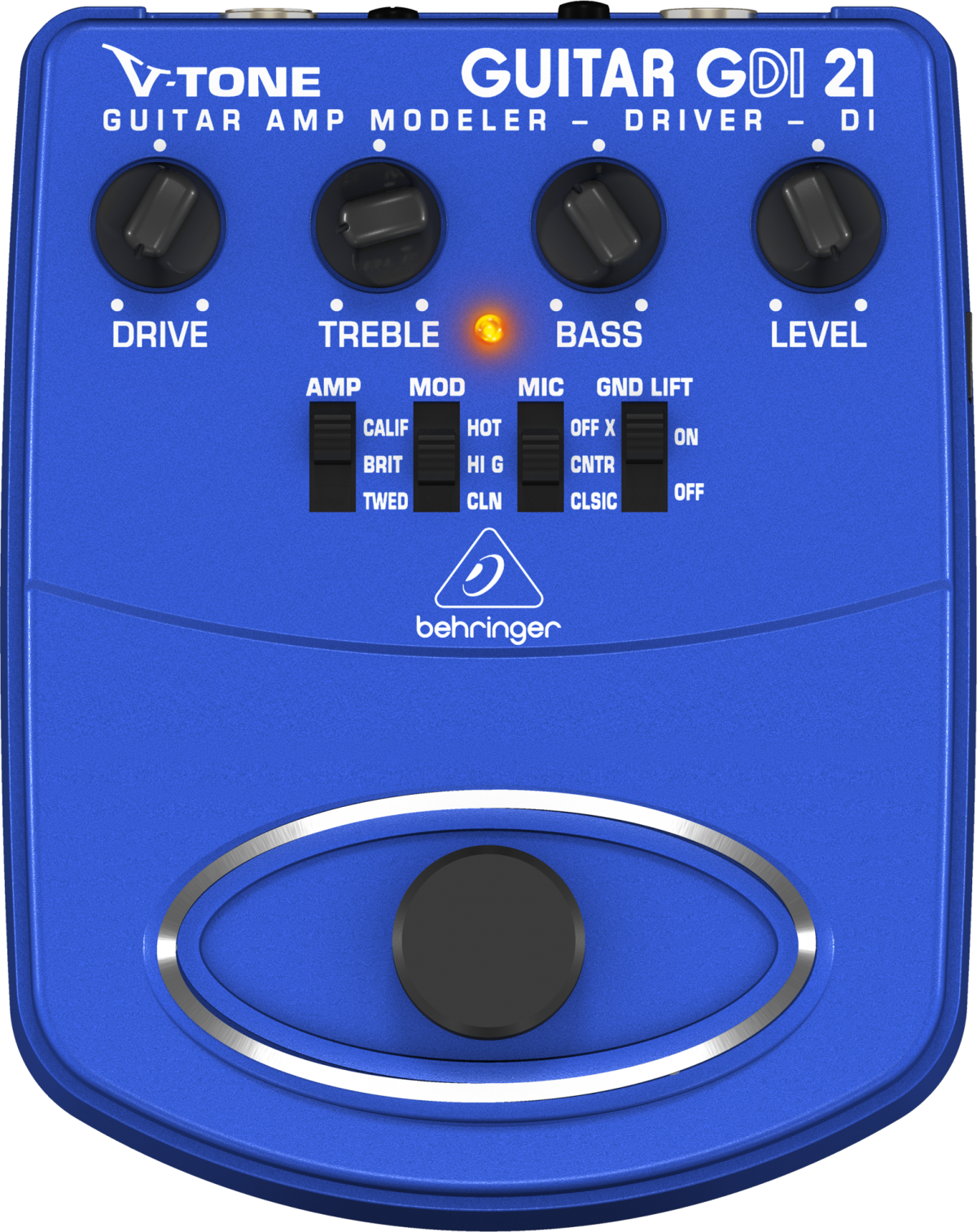 O modelo GDI21 possui 3 amplificadores de guitarra clássicos, 3 modos de ganho, 3 spots de microfone e uma saída DI XLR. Os modelos de amplificador incluem: CALIF