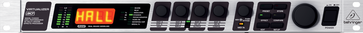 Adicione ainda mais poder e criatividade ao seu teclado, baixo, guitarra ou vocais com o Processador de Efeitos VIRTUALIZER PRO 3D FX2000. Esta incrível unidade tem dispositivo DSP de última geração e 71 incríveis algoritmos, todos em estéreo com qualidade real de estúdio e com efeitos 3D que irão adicionar uma nova dimensão ao seu som.