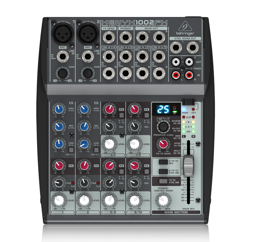 O mixer compacto XENYX 1002FX permite obter facilmente um som de qualidade superior pois este mixer possui 10 entradas, 2 canais auxiliares, 2 pré-amplificadores, multi-efeitos. Ele é um mixer versátil para sua performance.