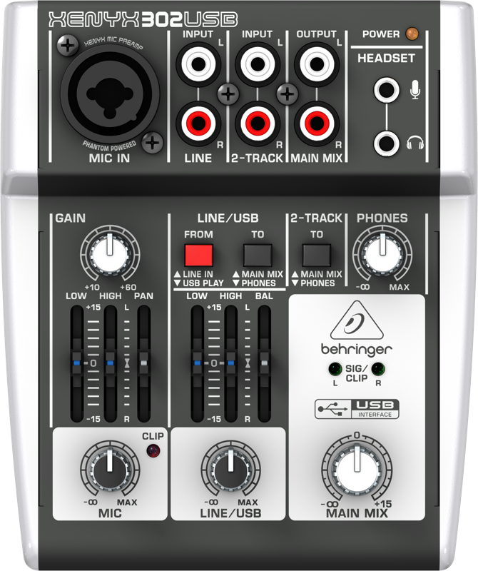 O Xenyx 302USB é um console de mixagem da Behringer. Ele possui um canal mono com pré-amplificador de microfones Xenyx, duas entradas de linha, e Phantom Power. Além disso, o console conta com uma interface de gravação USB e saída de fones de ouvido.