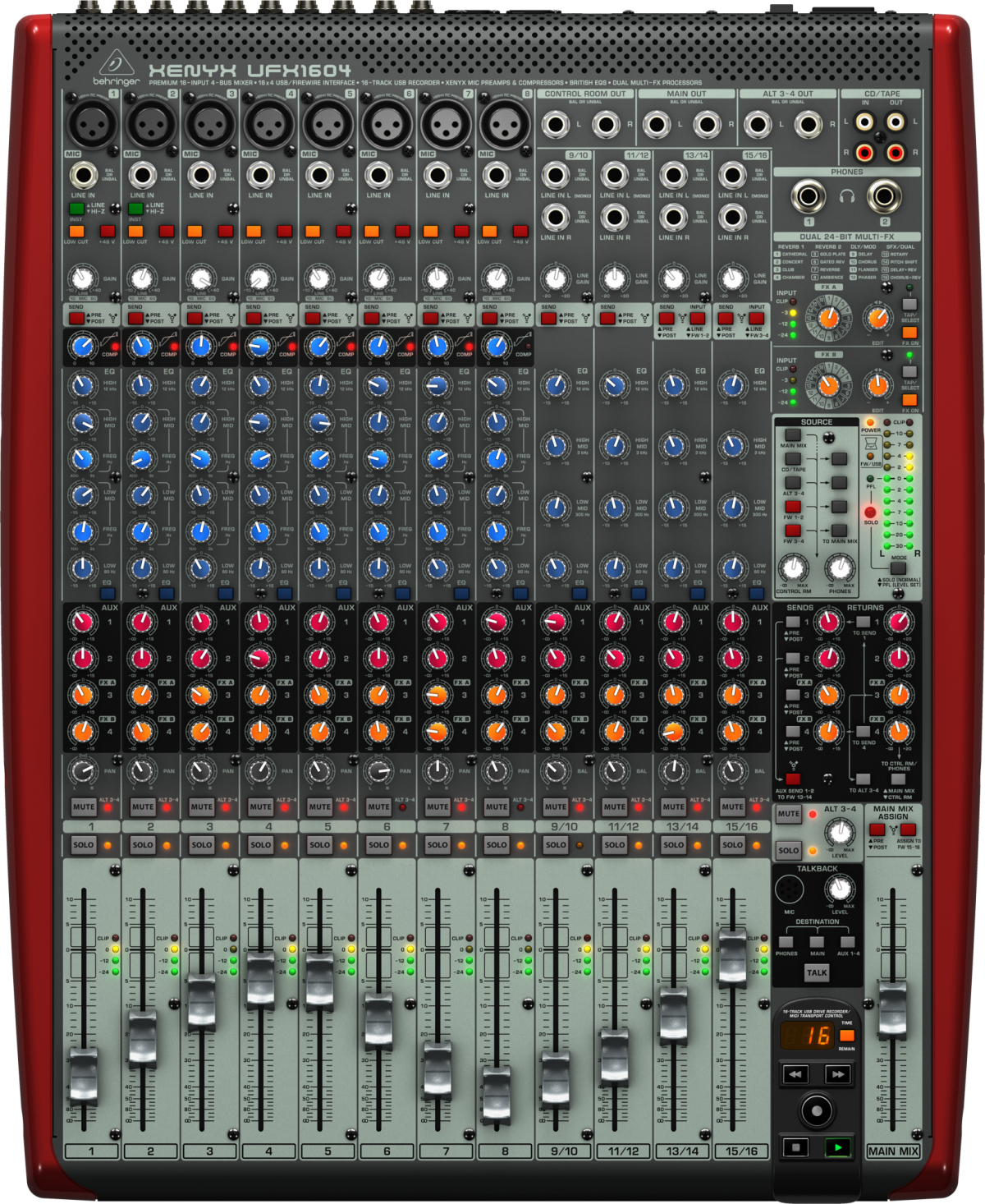 16 pistas integradas com gravador USB que permite gravações instantâneas de seu estúdio ou sessões ao vivo;