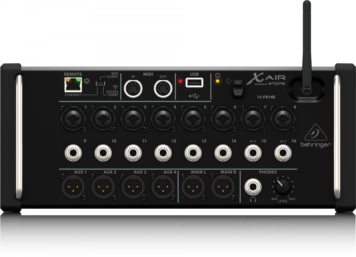 O revolucionário XR16, da Behringer é um mixer portátil de 16 entradas, montável em rack para tablets iPad e Android e é ideal para aplicações ao vivo e em estúdio, graças aos seus 8 pré-amplificadores MIDAS premiados mundialmente, potente módulo Wi-fi integrado para controle sem fio, além de conectividade USB para armazenamento de arquivos, atualizações do sistema e gravações estéreo não compactadas através do gravador estéreo USB. A Behringer também incluiu abas de rack e para-choques de proteção para maior flexibilidade.