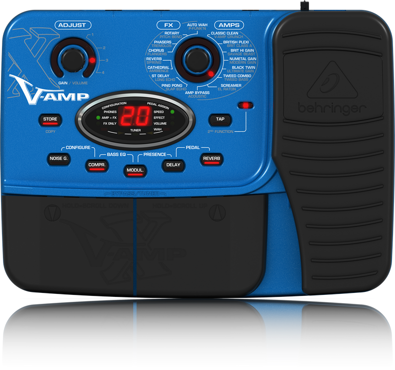 Processador multiefeitos estéreo de alta resolução em 24 bits, que inclui simulador de pedal de primeira linha, além de Delay, Wah-Wah, Chorus, Flanger, Reverb, Noise Gate, efeitos de compressão e muitos outros (delay e reverb podem ser utilizados simultaneamente em qualquer combinação);