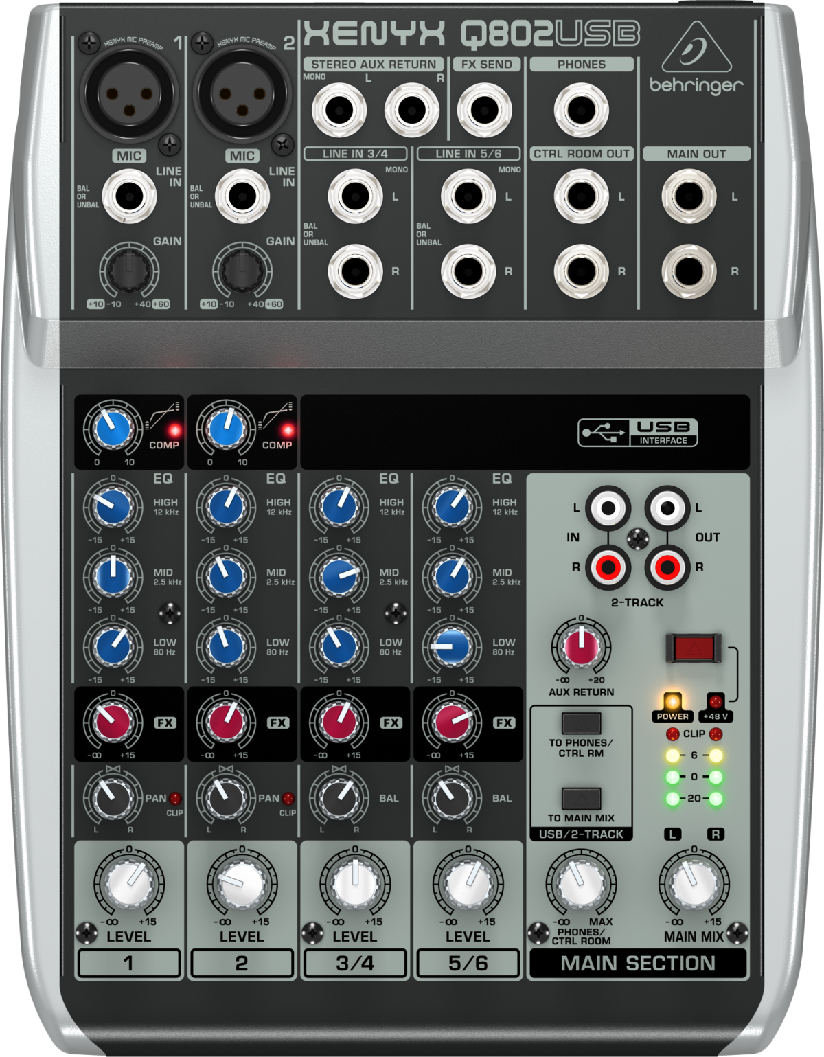 O Q802USB é um mixer ultracompacto que fornece facilmente um som de alta qualidade. O modelo conta com 8 inputs, 2 pré-amplificadores de microfone Xenyx e compressor Onenob nos canais mono. Ele também fornece as ferramentas State-Of-The-Art que você precisa para fazer gravações impressionantes, com qualidade profissional.