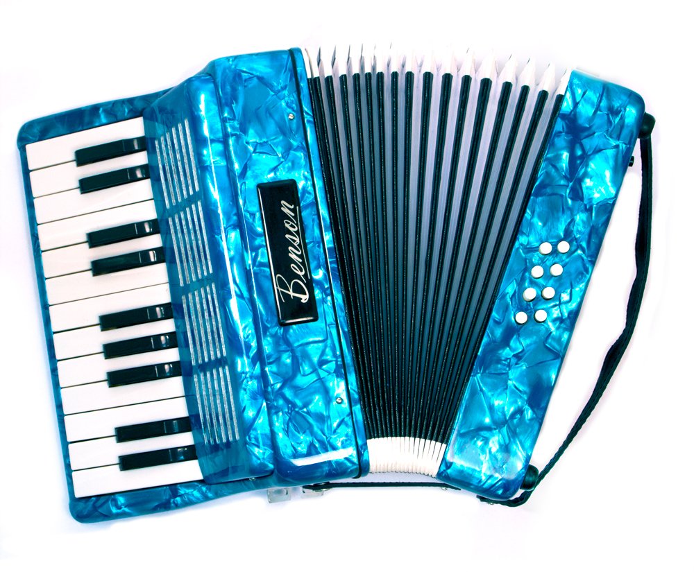 O acordeon Benson BAC08-PBL de 8 baixos e 22 teclas vem na cor azul perolado. O acordeon Benson possui um mecanismo de resposta de tecla aprimorado que permite uma resposta tátil com mais resistência, garantindo ao acordeonista arpejos com alta precisão. Seu formato reduzido permite horas de música com maior conforto e praticidade.