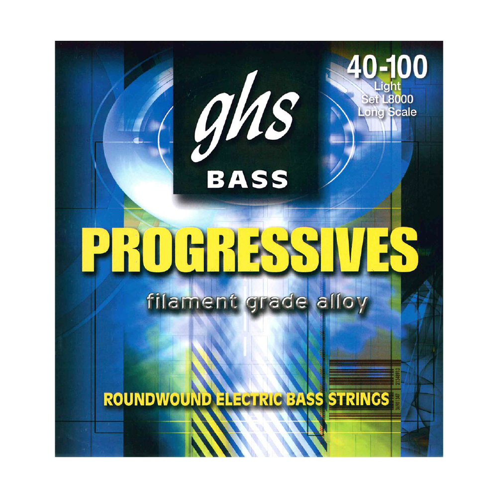 L8000 - Encordoamento 4 cordas para contrabaixo (040-100) tensão Leve, escala longa. Acabamento em Filament Grade Alloy, altamente magnética. Série Bass Progressives.