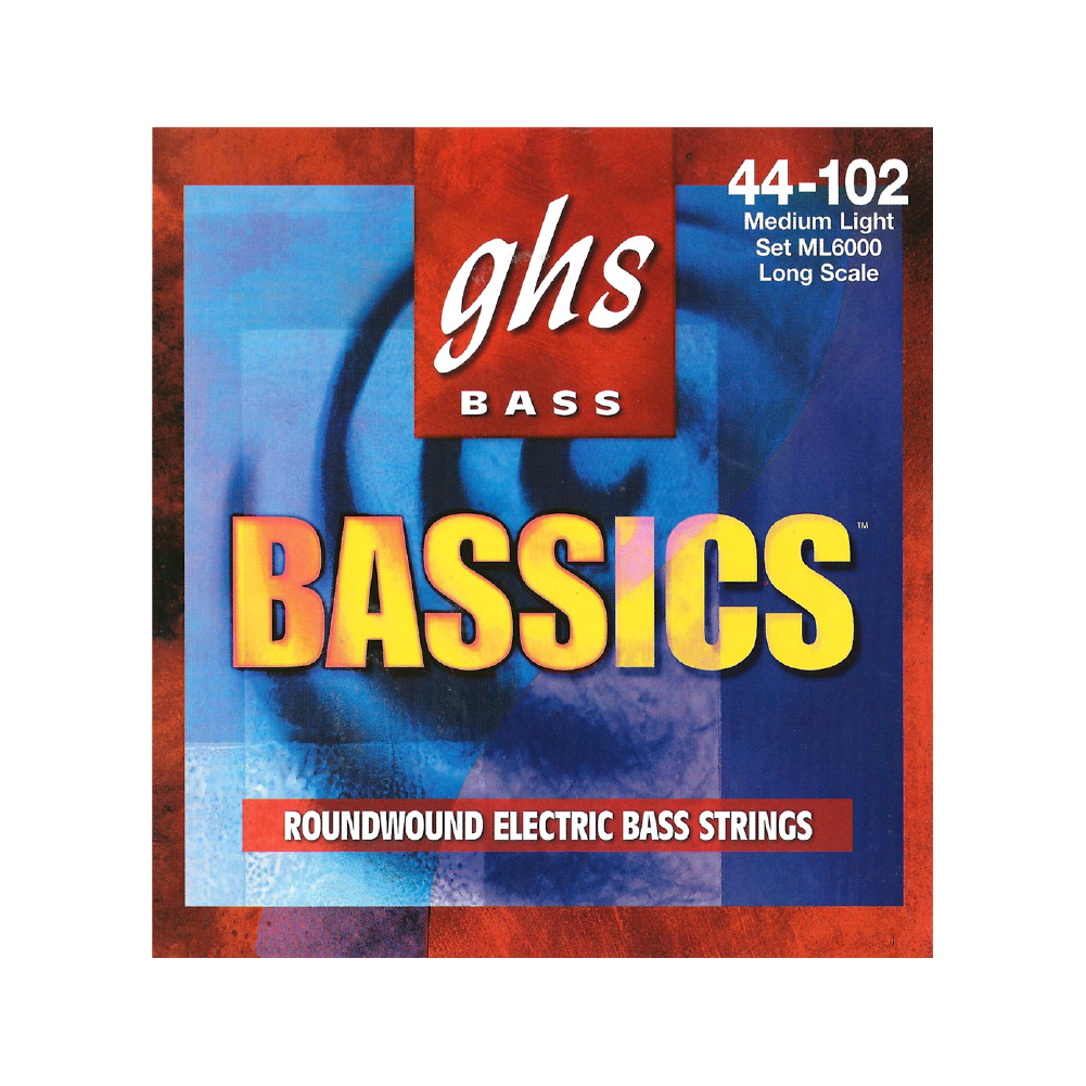 ML-6000 - Encordoamento 4 cordas para contrabaixo (044-102) tensão Média/leve, escala longa. Acabamento espiral em Aço/Níquel. Série Bassics.