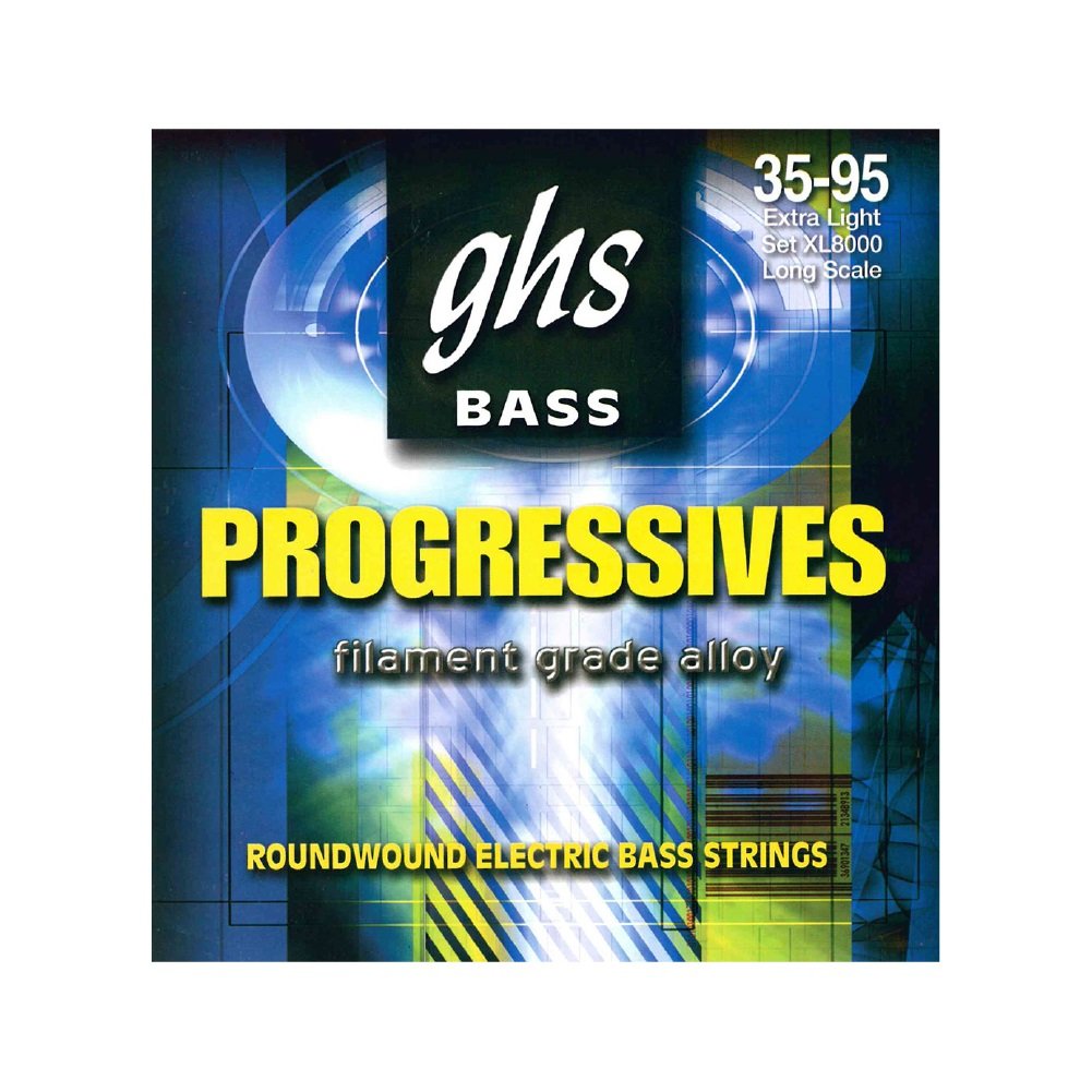 XL8000 - Encordoamento 4 cordas para contrabaixo (035-095) tensão Extra leve, escala longa. Acabamento em Filament Grade Alloy, altamente magnética. Série Bass Progressives.