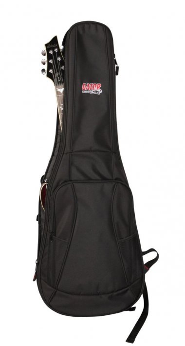 Gig Bag para guitarras construída em nylon resistente. Revestimento interior em espuma GFLEX de 20 mm por todos os lados. Alças ajustáveis acolchoadas tipo mochila e alça com manopla emborrachada. Compartimento externo grande com divisória para acessórios. Reforço interno na área do headstock e da ponte para evitar desgastes.