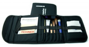 O kit de manutenção Hohner é um conjunto de ferramentas cuidadosamente selecionados e projetados especificamente para a manutenção da sua gaita e requisitos de otimização, para que você possa tirar o melhor proveito do seu instrumento. Com ele você pode: ajustar as palhetas para se adequar ao seu estilo de tocar, afinar sua gaita, reparar ou substituir válvulas, ajustar e lubrificar o mecanismo de deslizamento da chave e também inclui um conjunto de válvulas para gaitas cromáticas e XB-40, um tubo de cola especial para válvulas e um pequeno tubo de lubrificante para a chave.