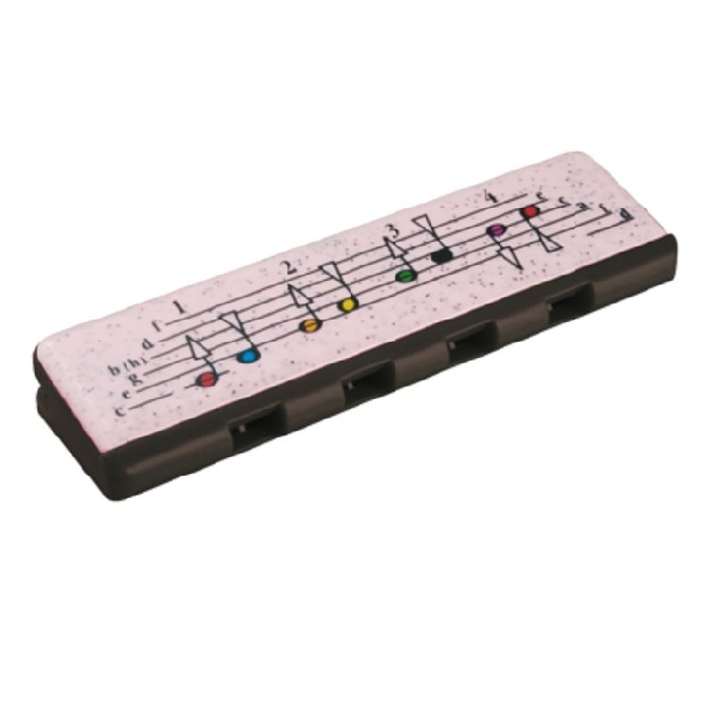 Harmônica Diatônica Speedy. Quatro canais confortavelmente separados e com um intervalo tonal de uma oitava completa. Corpo em Poliestireno e layout educacional na tampa de cobertura que permite um aprendizado instantâneo. Disponível em quatro cores diferentes. A construção robusta torna o instrumento musical ideal para crianças em idade pré-escolar.