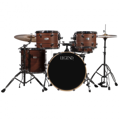 Bateria 7 peças com tons suspensos, bumbo de 22"x16", caixa de 14"x6,5", tons de 12" e 13" e surdo de 16", acompanha pedal de bumbo,1 estante para caixa, 1 estante girafa, maquina de chimbal e banco. Cor Mogno