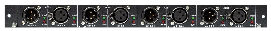 8 entradas e 8 saídas em forma de cartão de 4 entradas AES/EBU e 4 saídas AES/EBU;