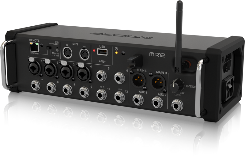 O MR12 é um Mixer Digital de 12 canais e 02 auxiliares para aplicação ao vivo que pode ser controlado à distância por iPad ou Android, também compatível com PC, Linux e Mac. O MR12 possui Roteador integrado facilitando o processo de Remote Control.