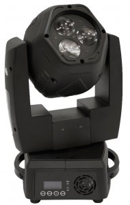 Moving Head do tipo Beam com duas saídas de luz e Tilt infinito.