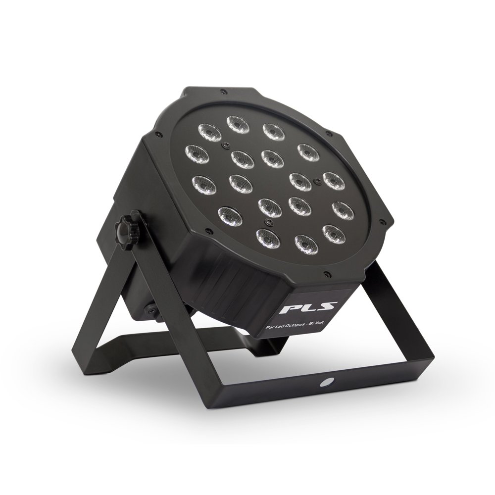 O Par Led Octopus da PLS é um refletor ultra-leve e design octogonal, sendo o mais compacto da categoria. Além disso, toda a estrutura do refletor é envolta em polímero resistente.