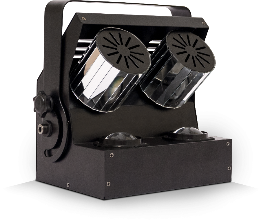 O Power Spin veio para fazer diferença nos produtos de efeito. O modelo possui 2 Leds de 10 watts que refletidos nos espelhos formam surpreendentes raios Beam. Seu funcionamento pode ser feito através de DMX, Master/Slave, automático ou por som.