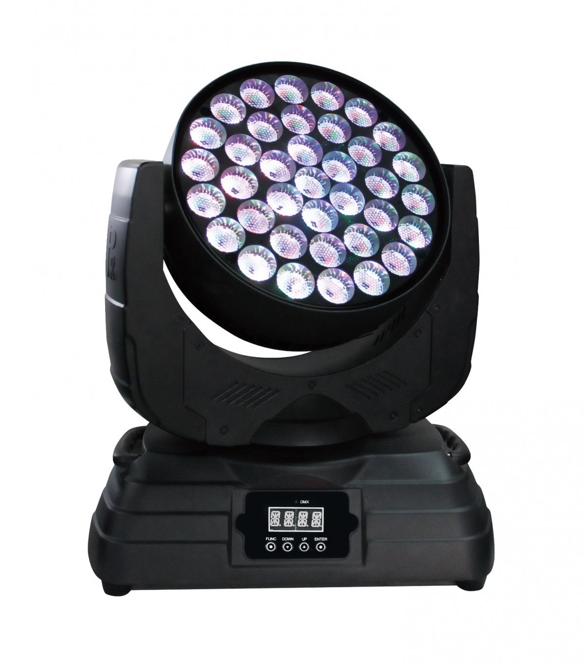 Este é o carro chefe dos moving heads de LED da PR. Possuindo 37 X 10W RGBW Leds outra característica notável é o zoom com ângulo variável de 13° à 52°. Como características adicionais, são destacados o CTO de 3200K à 10000K e o Wireless DMX.