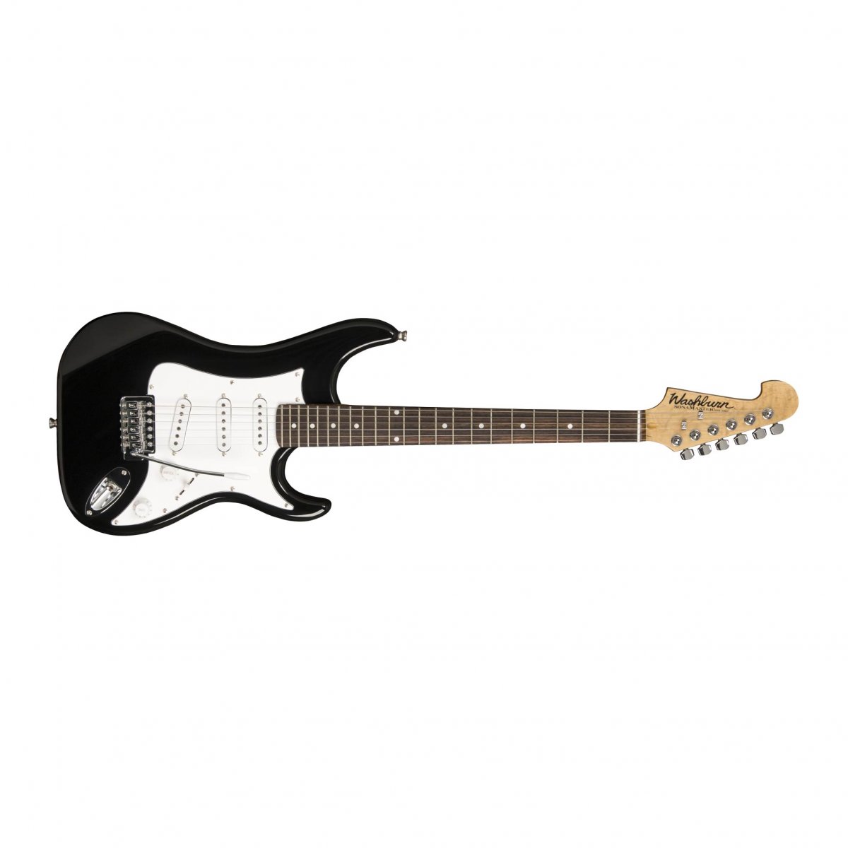 A S1TS é guitarra Washburn com corpo em Basswood, braço em Maple e escala em Rosewood. O modelo conta com 22 trastes com marcação Dot, Headstock invertido, captação Silgle S/S/S. Além de possuir chave seletora de 5 posições, 1 volume e 1 tone e Tarraxas Chrome Diecast.