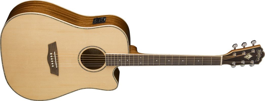 O WD15SCE é um violão Dreadnought Cutaway Eletroacústico com cordas de aço. O modelo possui tampo em Spruce sólido, fundo e laterais em Mahogany, braço em Mogno com acabamento acetinado e escala em Rosewood com 20 trastes. Além disso, o modelo conta com frisos do corpo e braço em Abalone, face frontal do Headstock em Rosewood e com o Logo Washburn em Madrepérola incrustrada. O WD15SCE ainda possui Preamp Fishman Isys+ Tuner e Tarraxas Chrome Diecast.