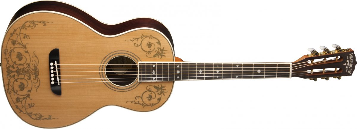 A linha Parlor foi baseada em modelos da Washburn produzidos há mais de 100 anos. Possui tampo em Cedro maciço, fundo e laterais em Rosewood.